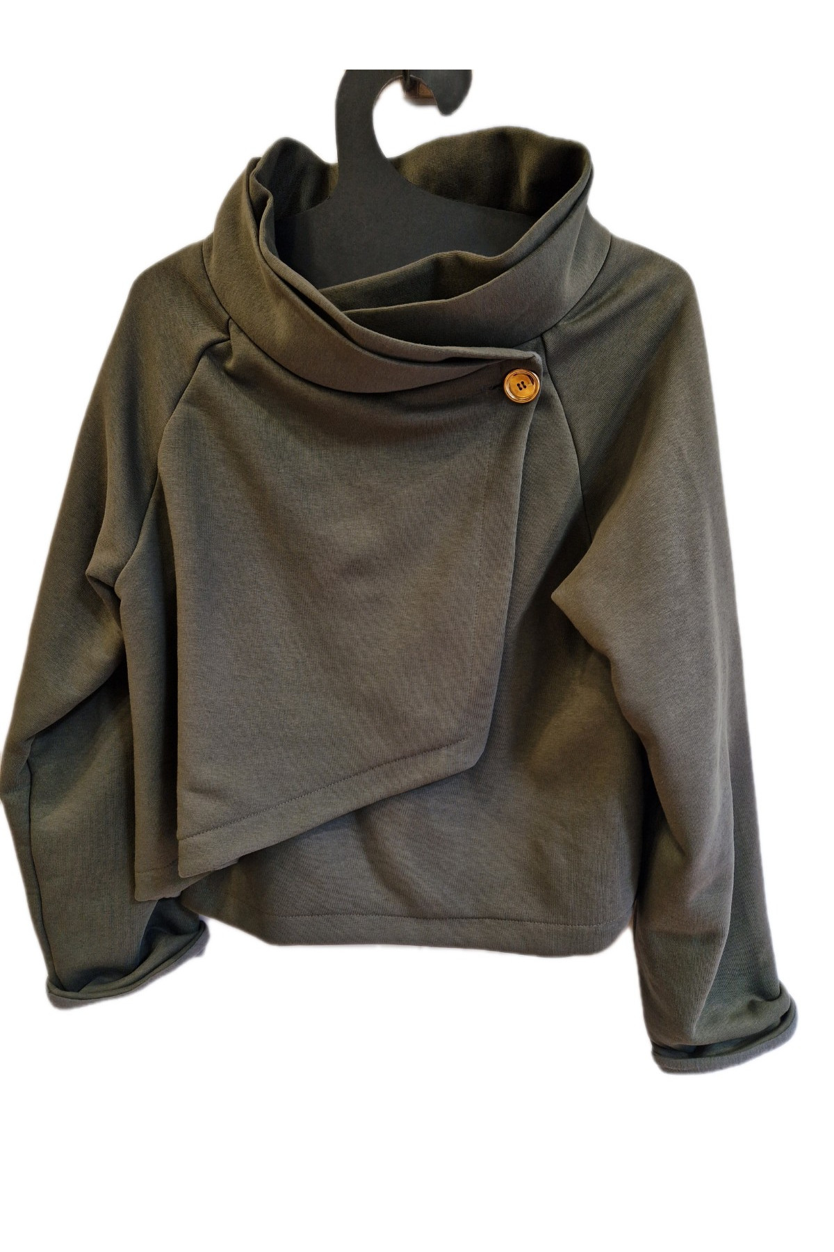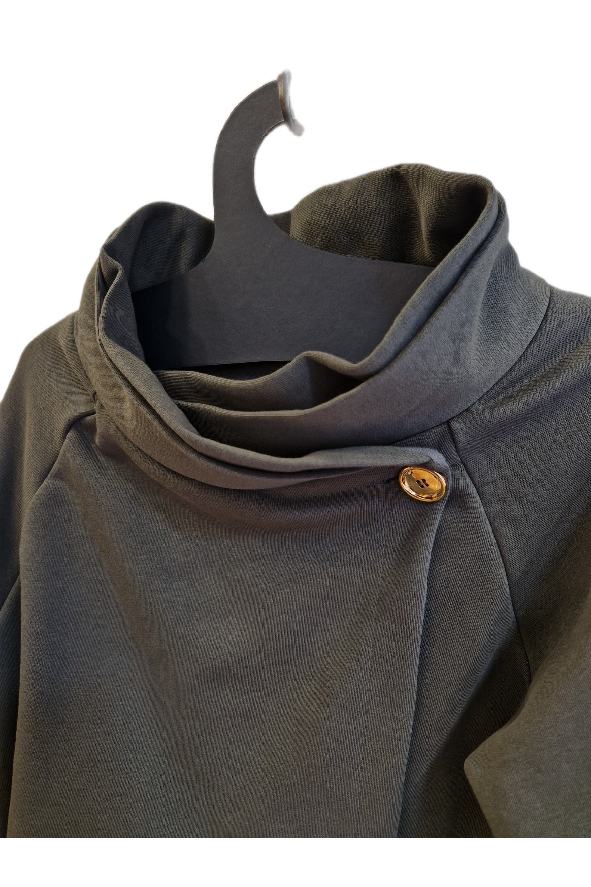 Χειροποίητο βαμβακερό μακρυμάνικο γυναικείο πανωφόρι. Είναι κατασκευασμένο από φούτερ χοντρό ύφασμα κατάλληλο για όλες τις καθημερινές σας εμφανίσεις. Έχει διπλή επένδυση φούτερ εξωτερικά και βαμβακερή ποπλίνα εσωτερικά. Έχει φαρδιά γραμμή που προσφέρει άνεση και στυλ.