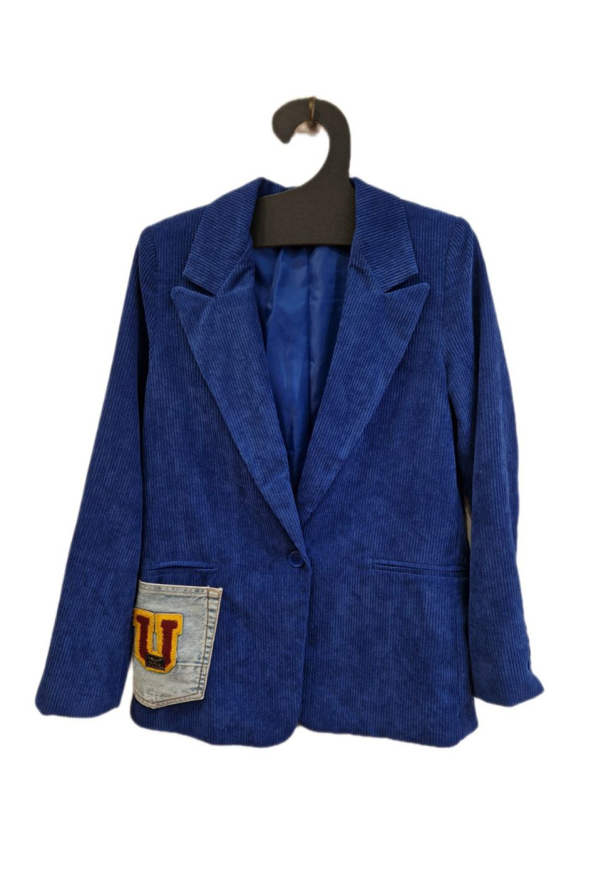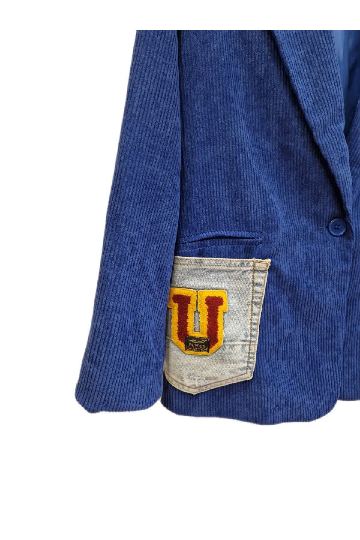 Σακάκι κοτλέ μπλε με λεπτομέρειες τζιν