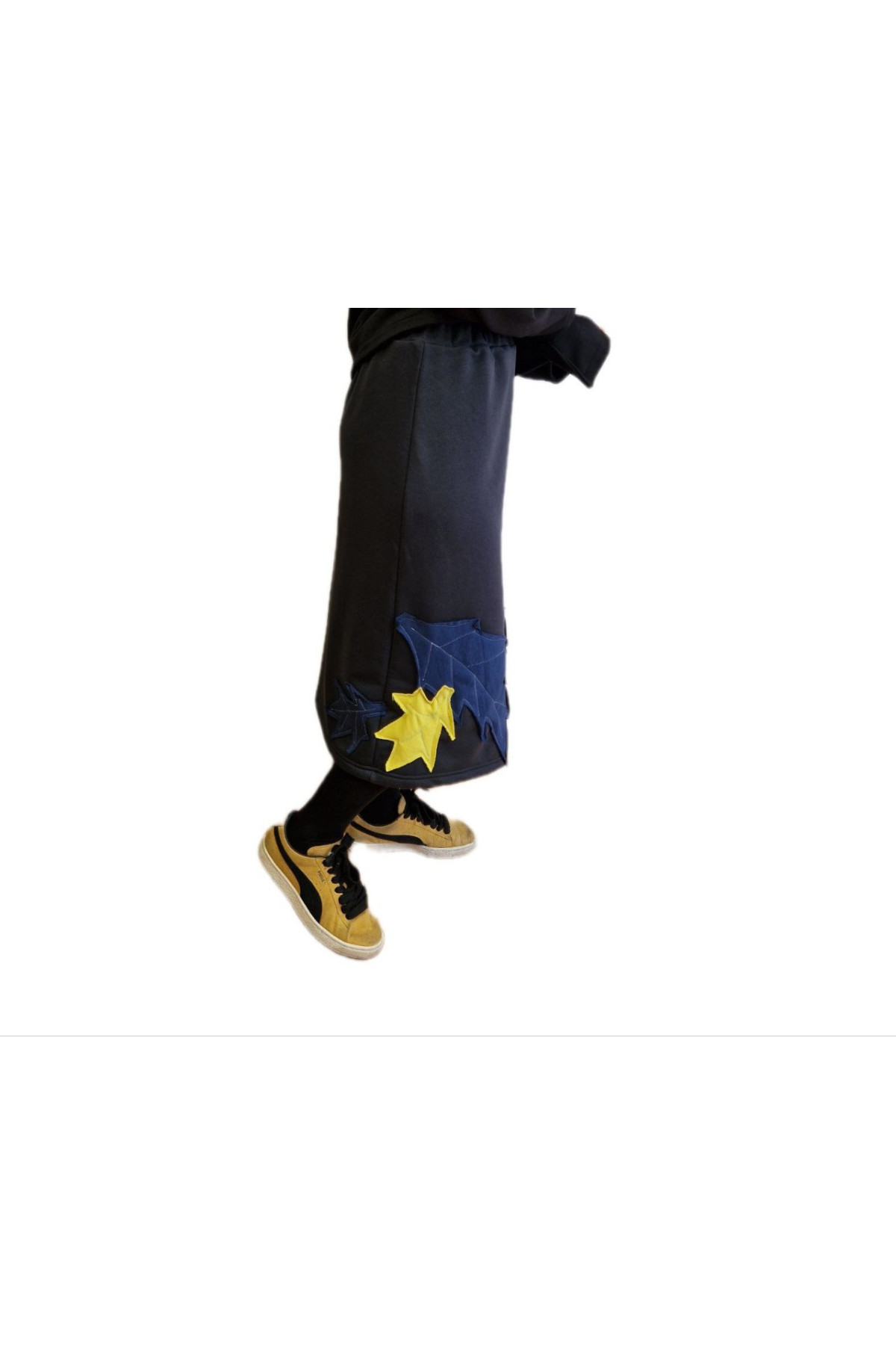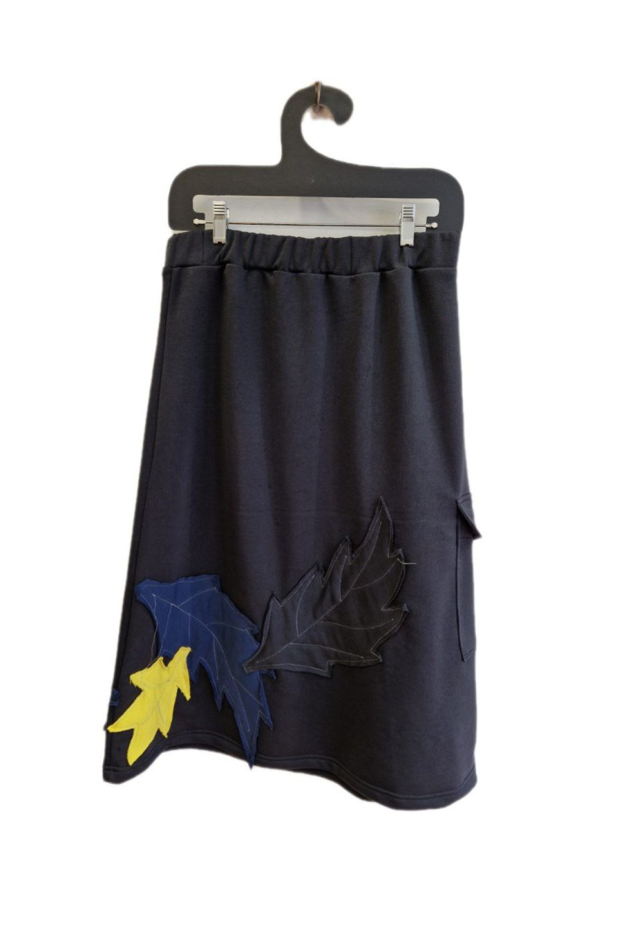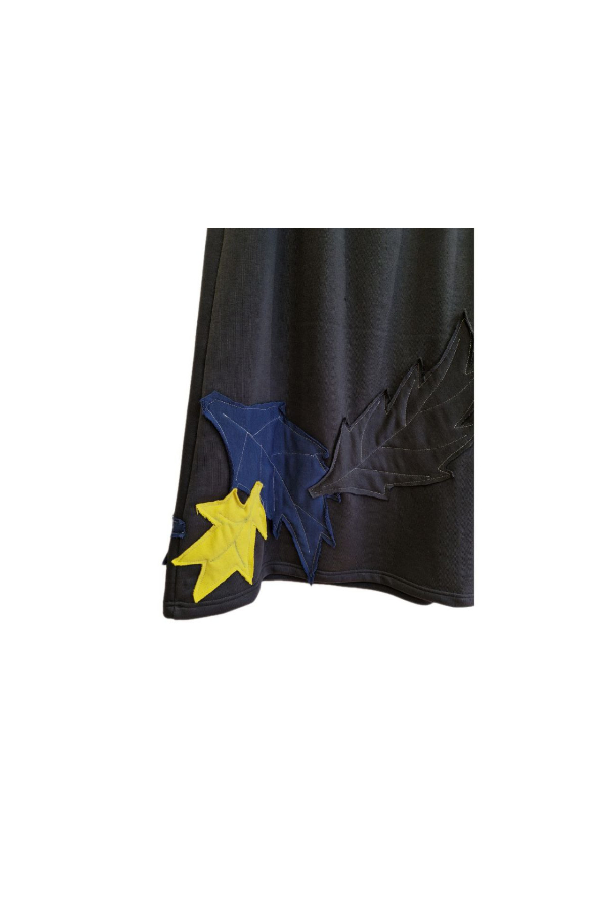 Φούστα φούτερ με απλίκέ παράσταση φύλλα