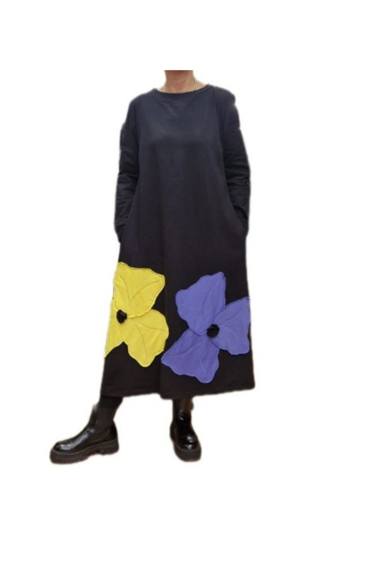 Φόρεμα μακρυμάνικο με απλικέ παράσταση λουλούδια